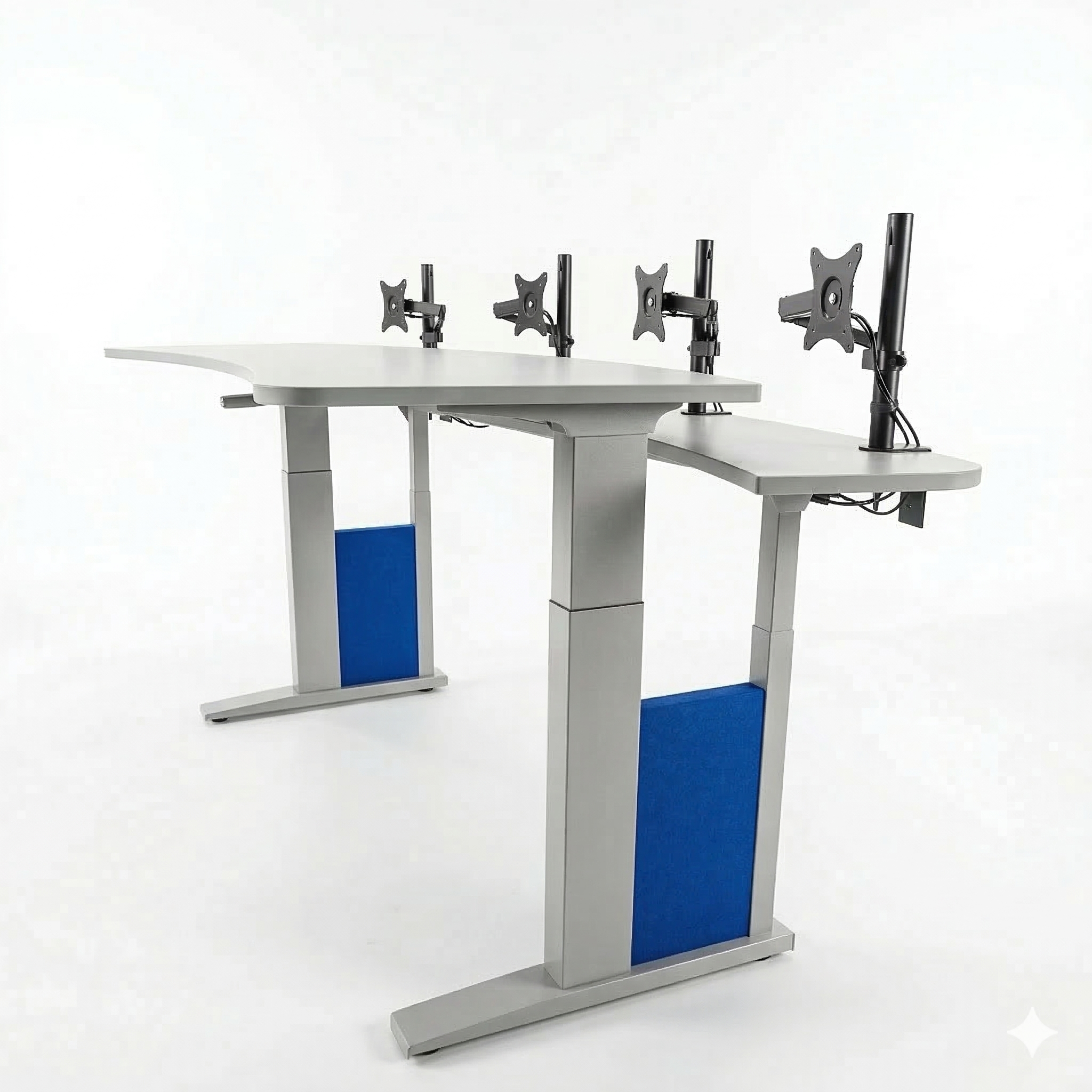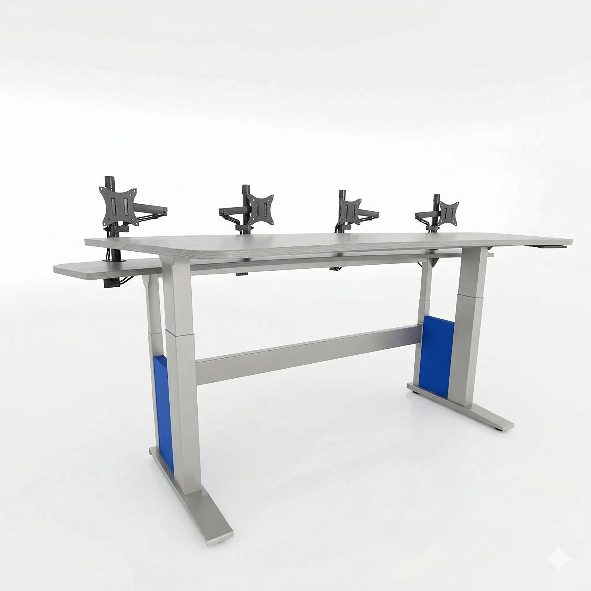 Descripción General Estación de trabajo de alto rendimiento diseñada para entornos de operación crítica 24/7. El sistema integra doble superficie de ajuste independiente, permitiendo una adaptabilidad antropométrica total mediante tecnología de elevación sincronizada.