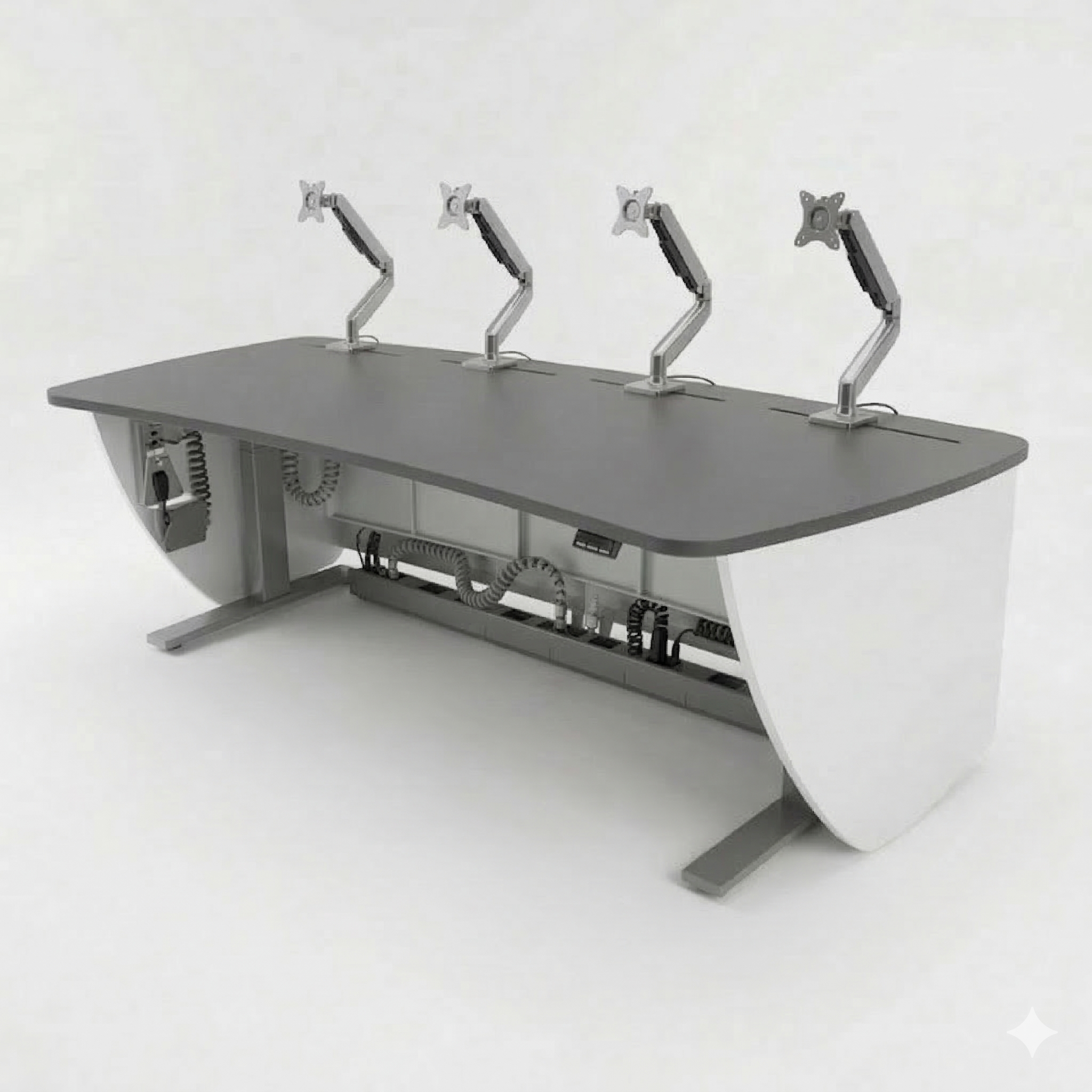 La Consola Individual Elevable es la solución definitiva para operadores en entornos críticos que requieren máxima versatilidad. Su sistema motorizado de alta precisión permite alternar entre el trabajo sentado y de pie, cumpliendo con los más altos estándares de salud ocupacional y eficiencia operativa 24/7.